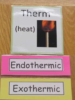 I have small posters which include the word part and a graphic to illustrate its meaning posted on the cabinet doors. As our class learns a vocabulary term that matches a word part, we place it under the word part poster.